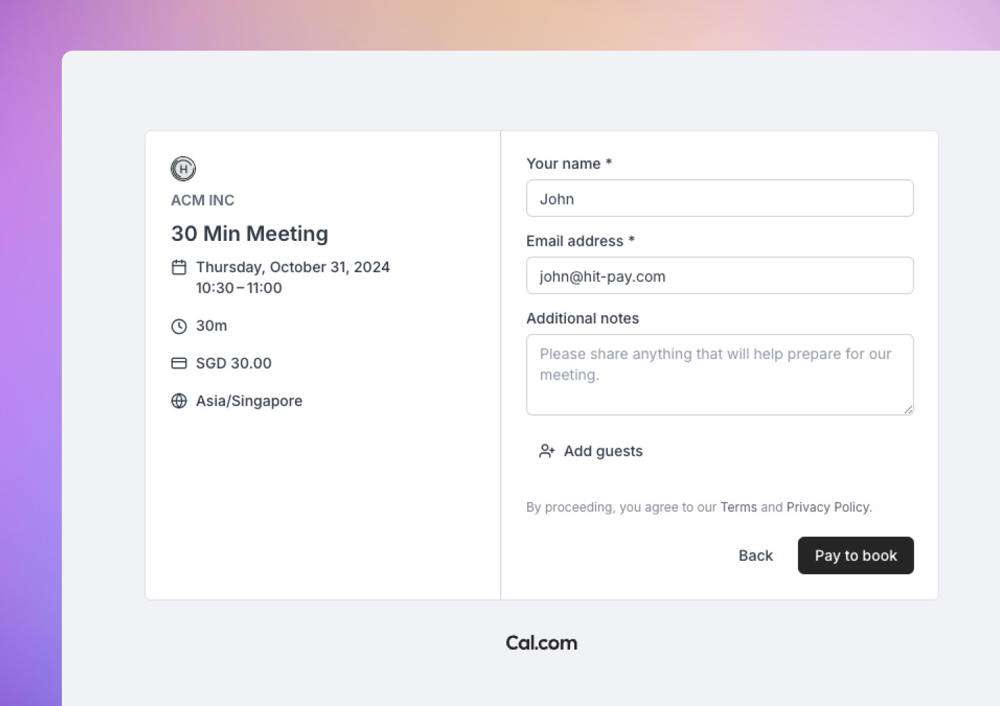 HitPay's Cal ID payment integration combines powerful scheduling with seamless local payment acceptance. Our online scheduling software integration is built for customers in APAC, supporting their favorite e-wallets and banking apps.