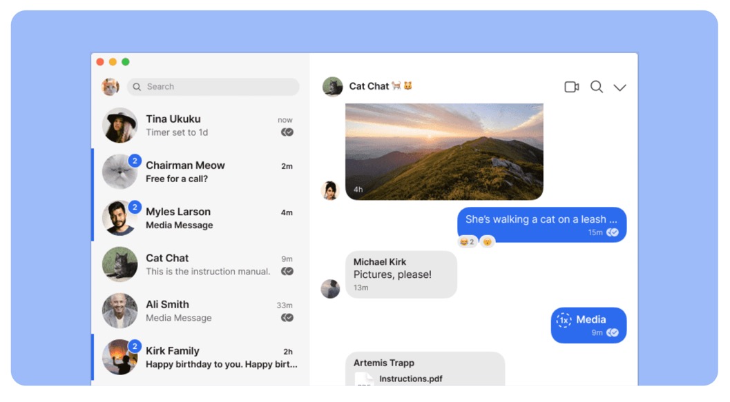 Schedule a chat with your guests or have a Signal Video call.
