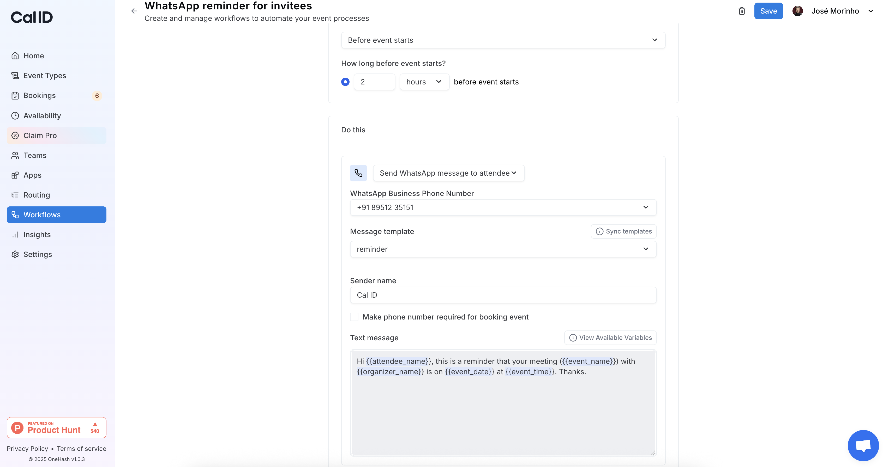 Connect your business account and sync whatsapp templates to use within Cal ID.